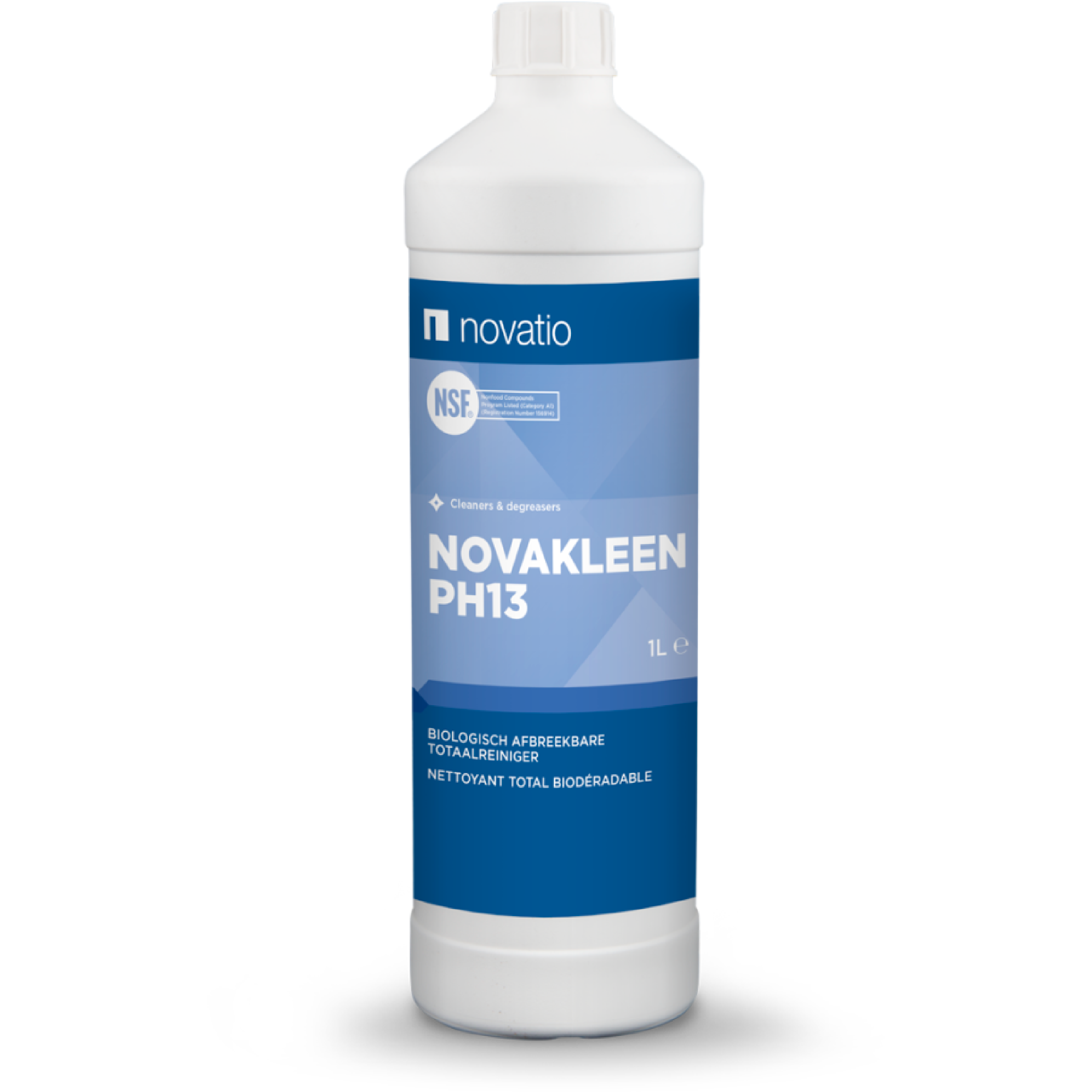 Novatio Novakleen PH13 is een krachtige, professioneel inzetbare alkalische reiniger, speciaal ontwikkeld voor het verwijderen van hardnekkig vuil, vet, olie, roet en atmosferische aanslag. Dankzij de hoge pH-waarde (pH 13) is dit product bijzonder geschikt voor het dieptereinigen van ramen, deuren, gevels, aluminium profielen, vloeren en andere harde oppervlakken.
